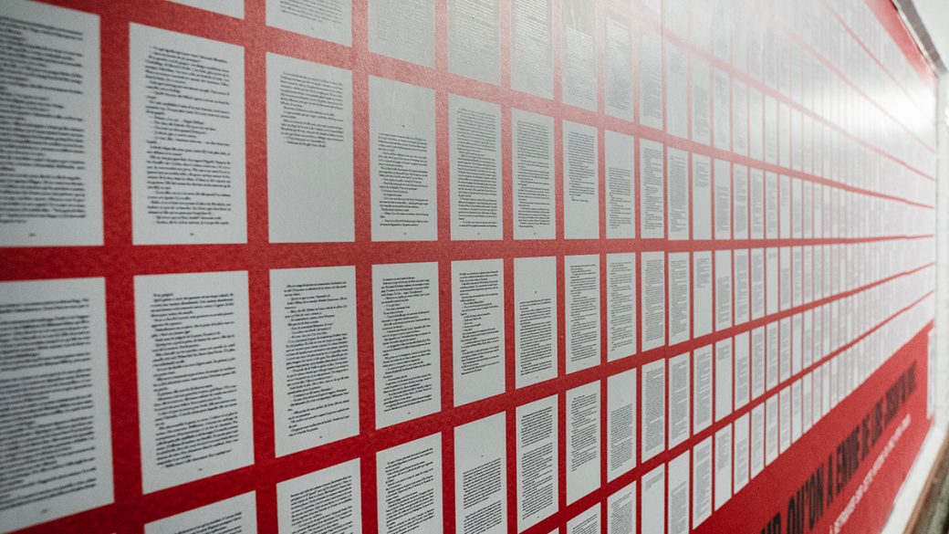 Le principe est simple et assez fascinant : l’intégralité du roman est imprimée sur une seule et même affiche, avec les 397 pages condensées en un immense mur de texte. Les voyageurs peuvent littéralement s’arrêter pour “plonger” dans le livre, en picorer des extraits en attendant leur rame ou en revenir plusieurs fois, comme on reviendrait à un chapitre.