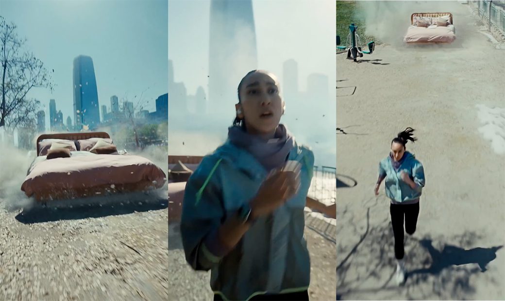 Pour cette campagne de rentrée, Apple s’est associée à la maison de production Iconoclast et au collectif de réalisateurs Alaska. Le résultat est une série de trois films de 15 secondes aussi drôles qu’anxiogènes pour quiconque a déjà essayé de se remettre au sport. Le concept créatif repose sur une métaphore visuelle implacable : la tentation de l’abandon prend la forme d’objets du quotidien qui vous pourchassent littéralement.