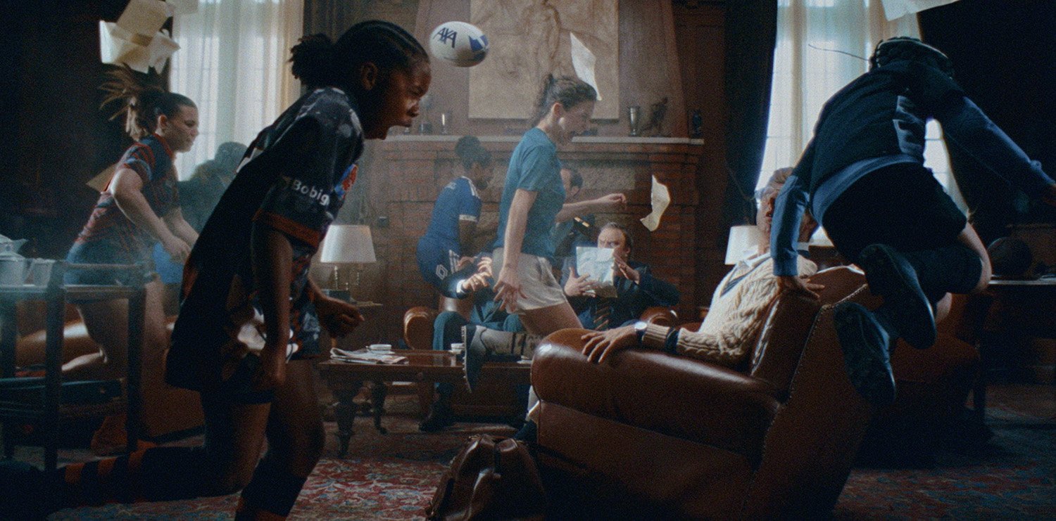Pour marquer les esprits, Publicis Conseil a imaginé une campagne puissante dont le point d’orgue est un film de 3 minutes réalisé par Julien & Quentin. Le récit commence dans l’ambiance caricaturale des années 70, où une réunion d’hommes en costume aligne les arguments absurdes pour interdire le rugby aux femmes. Ce miroir tendu au passé souligne les freins culturels que les joueuses ont dû briser pour exister.