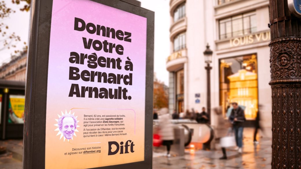 Le brief devait être un casse-tête : comment faire émerger une plateforme de dons alors que les sollicitations pleuvent en décembre ? La réponse de la nouvelle agence créative Alede Corp. est brillante de simplicité. Elle tient en un nom : Bernard Arnault.