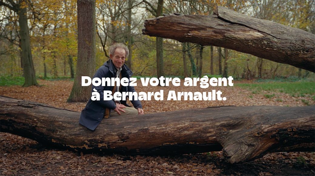 Il y a des phrases qu’on ne pensait jamais lire sur une affiche publicitaire, et encore moins entendre dans un spot caritatif. « Donnez votre argent à Bernard Arnault » est sans doute en tête de cette liste improbable.