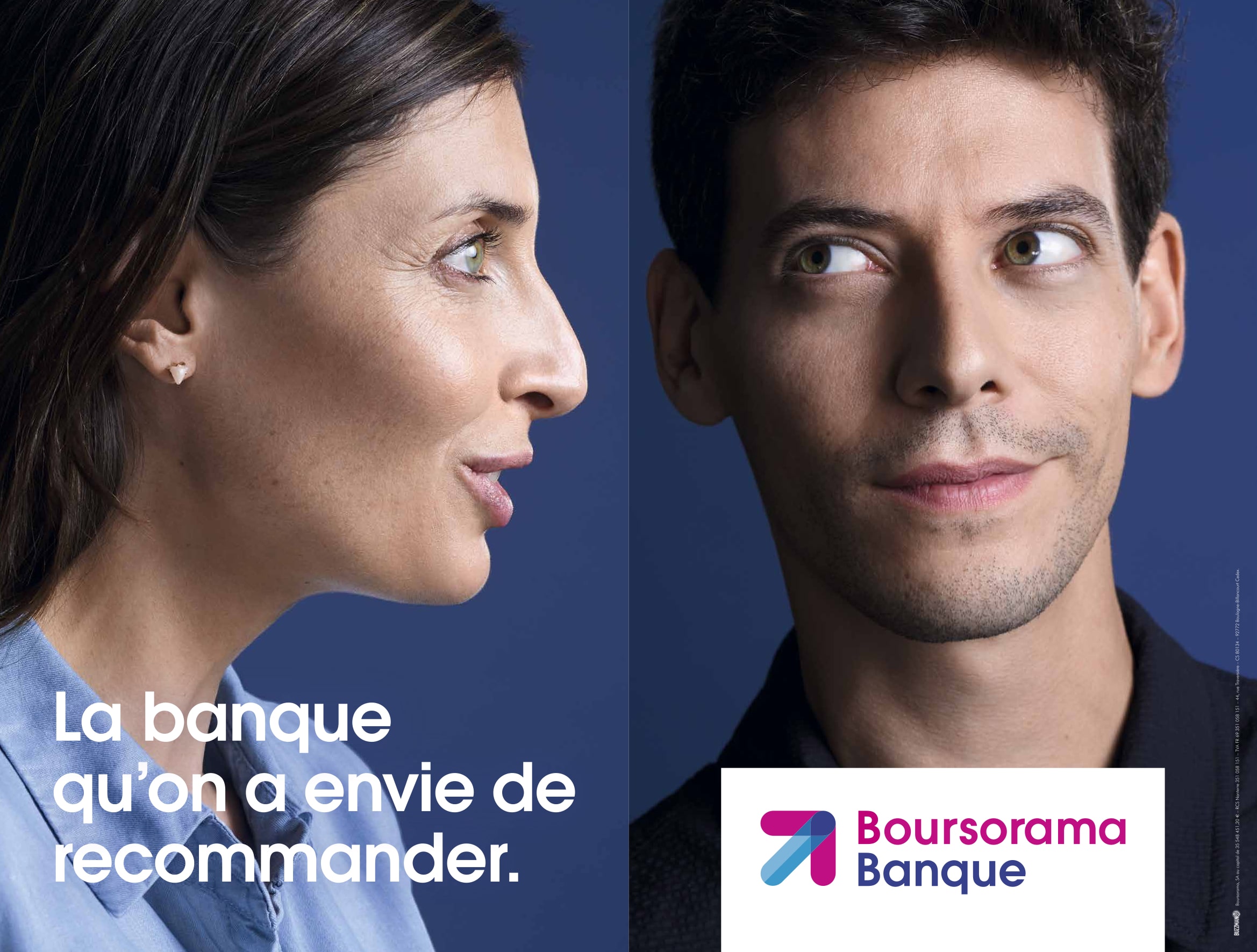 Pour mettre en lumière cette relation de confiance avec ses clients, la campagne met en scène de façon rupturiste un monde dans lequel des hommes et des femmes recommandent des choses moyennes à leurs proches. Des situations absurdes qui permettent ainsi de démontrer la force de la recommandation de Boursorama Banque.