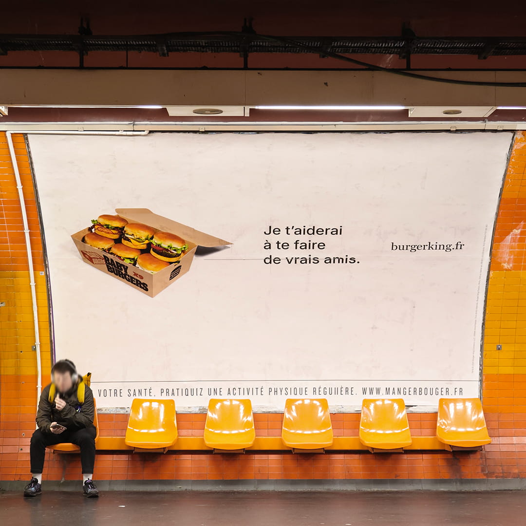 C’est une réponse du berger à la bergère, ou plutôt du burger au robot. L’agence Buzzman a repéré le potentiel comique immense des promesses de l’IA Friend. Là où la technologie nous vend une amitié sans contrainte (« je ne laisserai jamais de vaisselle dans l’évier », « je serai toujours là pour toi »), l’enseigne de fast-food propose une alternative beaucoup plus concrète : les Baby Burgers.