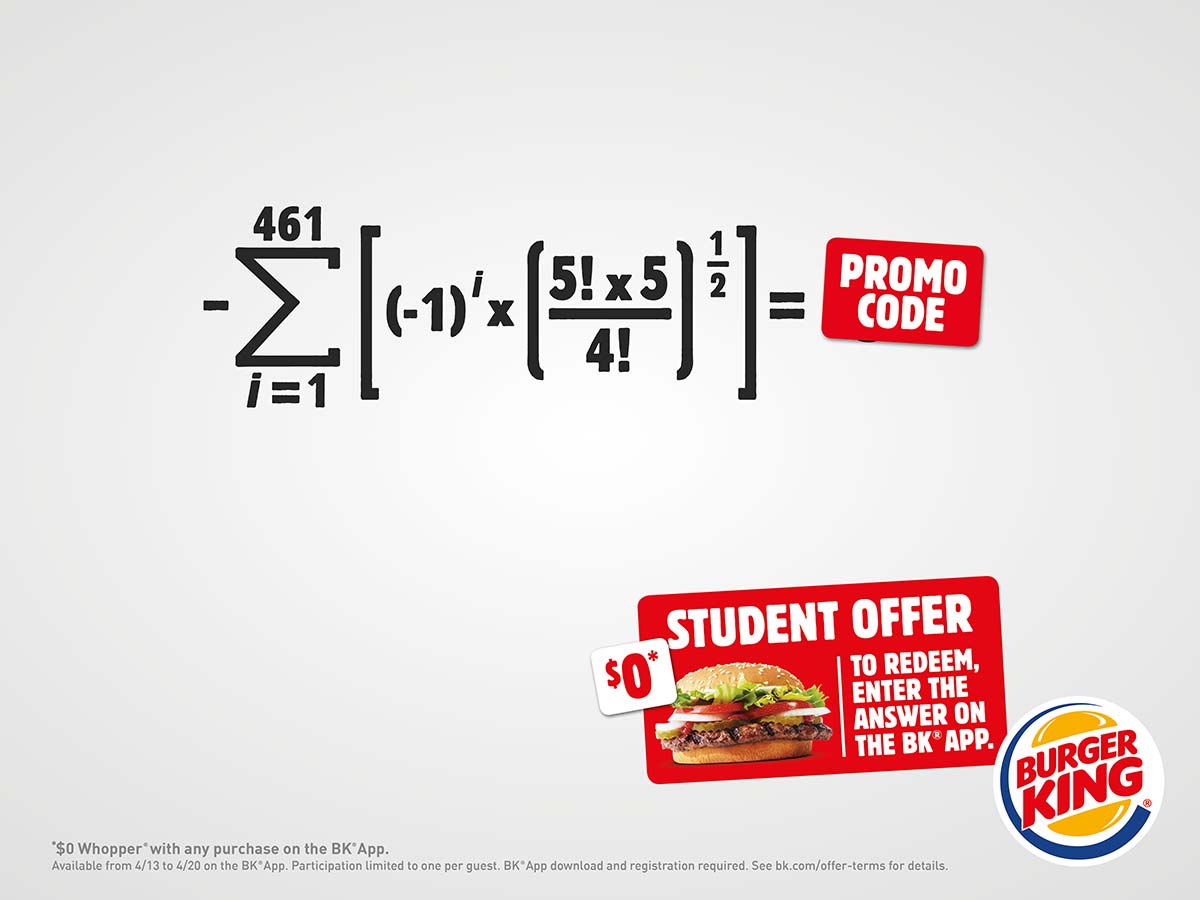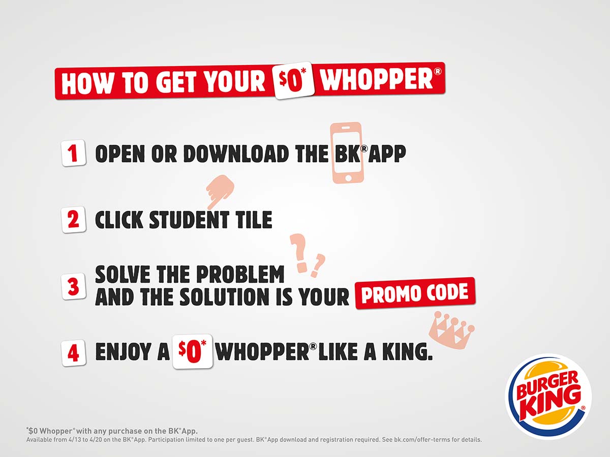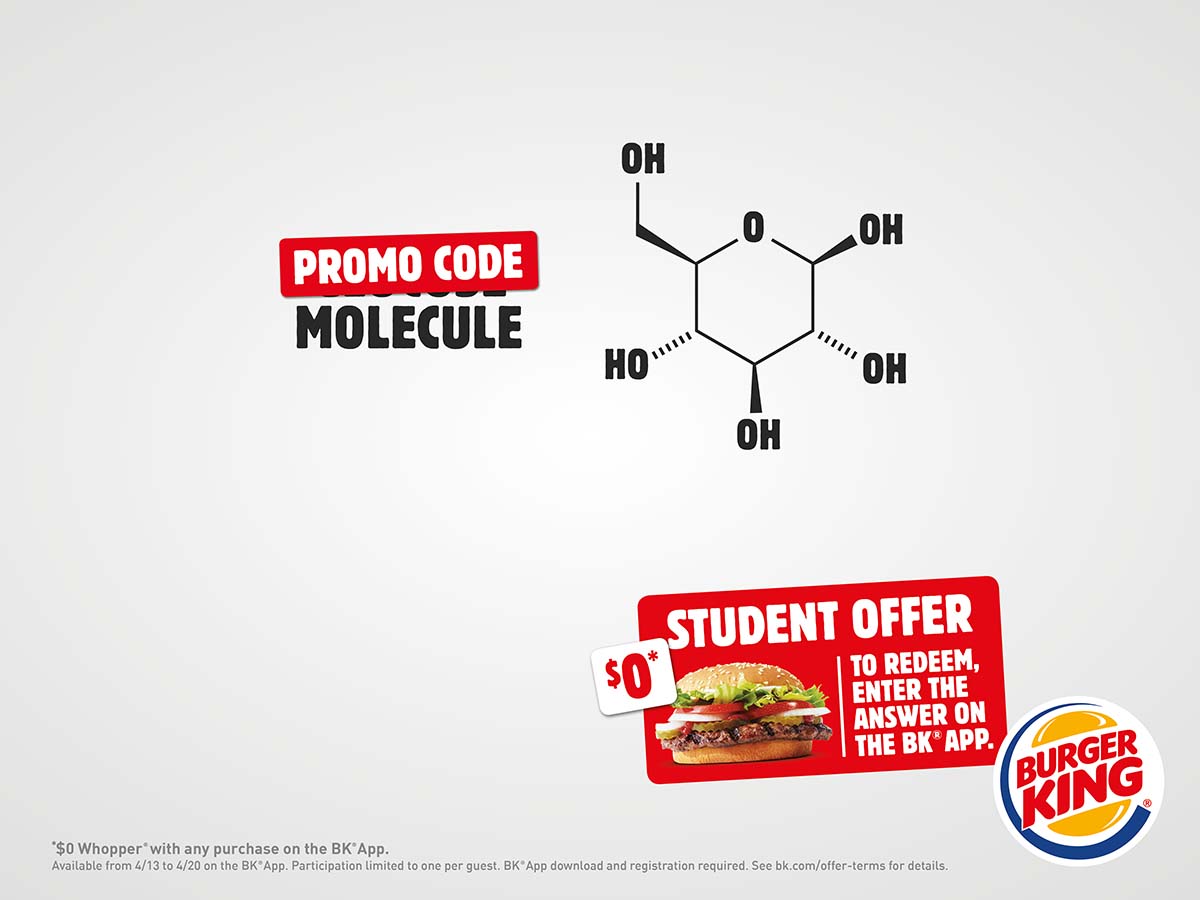 Comment aider les étudiants et continuer de les stimuler alors qu’ils sont coincés chez eux ? Comment leur donner envie d’apprendre de nouvelles choses et de se creuser les méninges ? C’est les questions que se sont posées les équipes créatives de Buzzman en imaginant cette nouvelle offre étudiante inédite. Vous aurez compris le principe, le roi du burger à imaginé une série de tests à retrouver sur ses réseaux sociaux. On y retrouve une équation mathématique, la définition d’une molécule et même une analyse d’un texte de littérature. Mais le plus cool, c’est qu’en trouvant le résultat de ces tests, vous obtiendrez un code de réduction pour un Whopper gratuit.