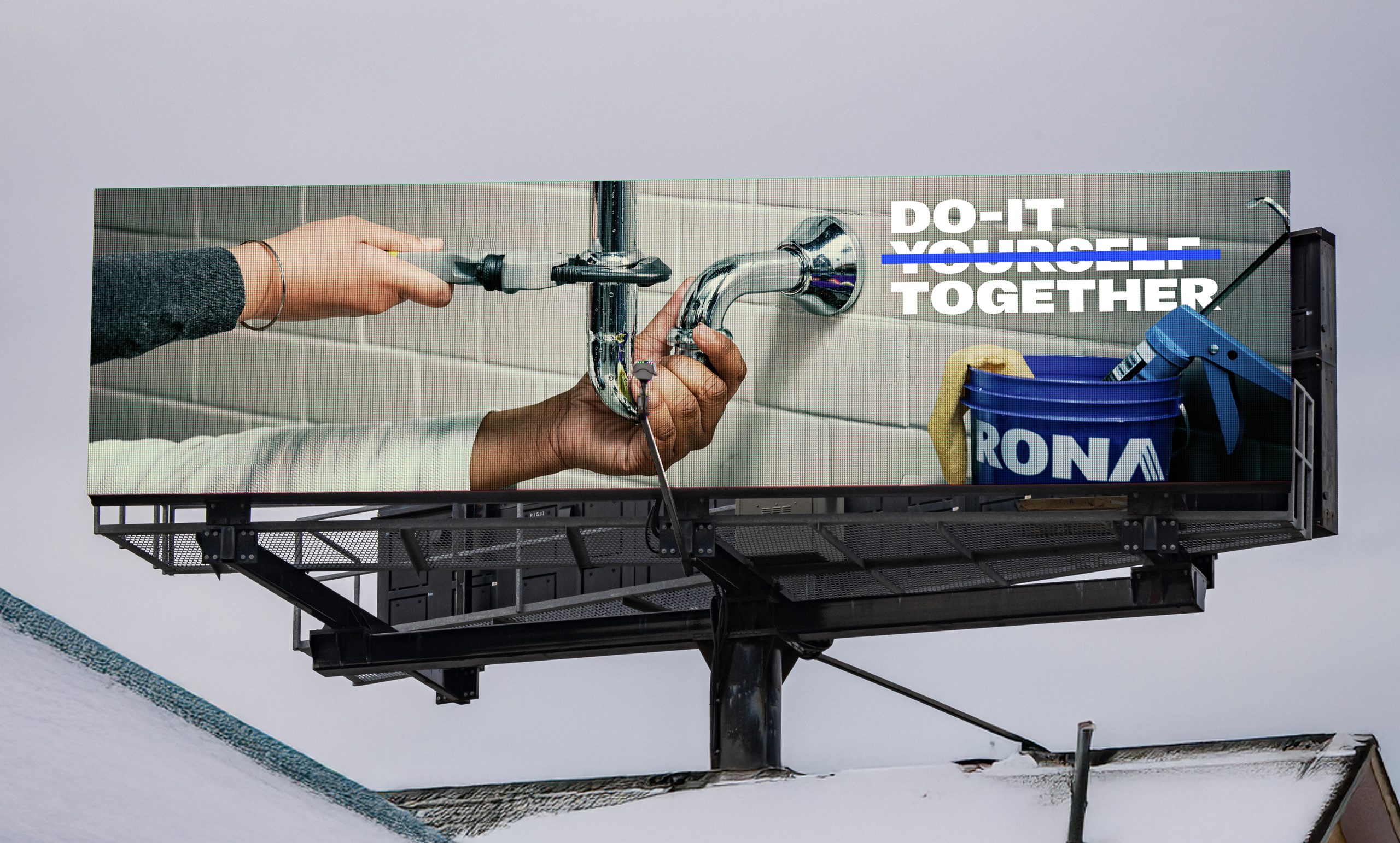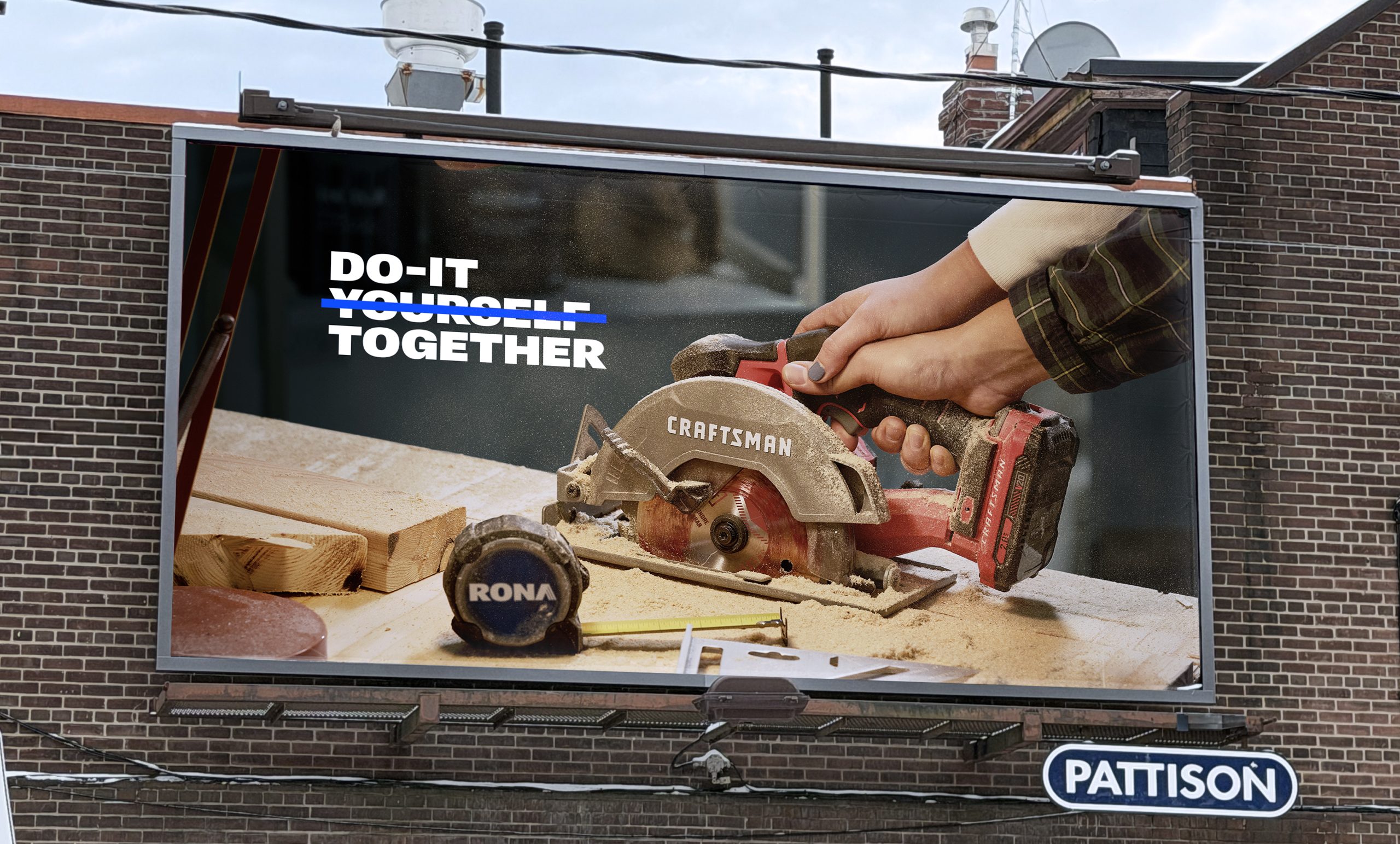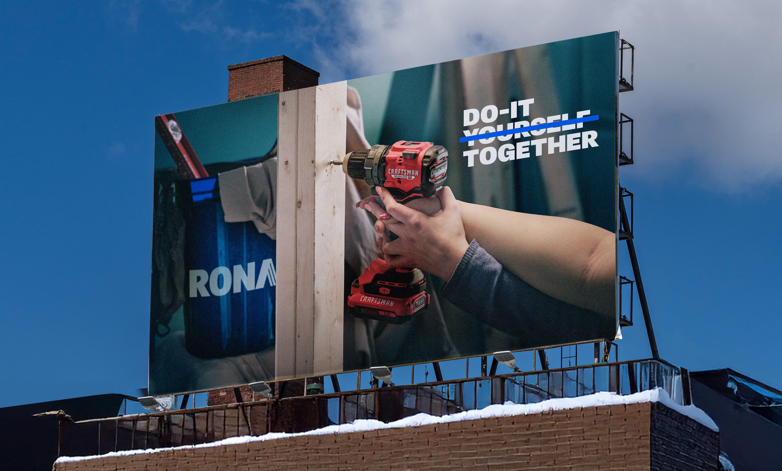 Le concept créatif repose sur un insight simple mais puissant : construire des choses à deux, c’est quand même plus sympa. RONA et Courage jouent habilement sur le double sens de l’expression « Doing It » (le faire), apportant une touche d’humour et de légèreté bienvenue dans un secteur souvent perçu comme très technique et solitaire.