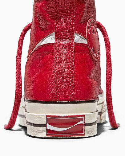 La pièce phare de la collection, c’est la Chuck 70 édition limitée, disponible en cuir premium et dans le rouge emblématique de Coca-Cola. On y retrouve le célèbre motif ondulé de la marque, des touches vertes inspirées des bouteilles en verre vintage, et des détails raffinés jusque dans la semelle en caoutchouc.