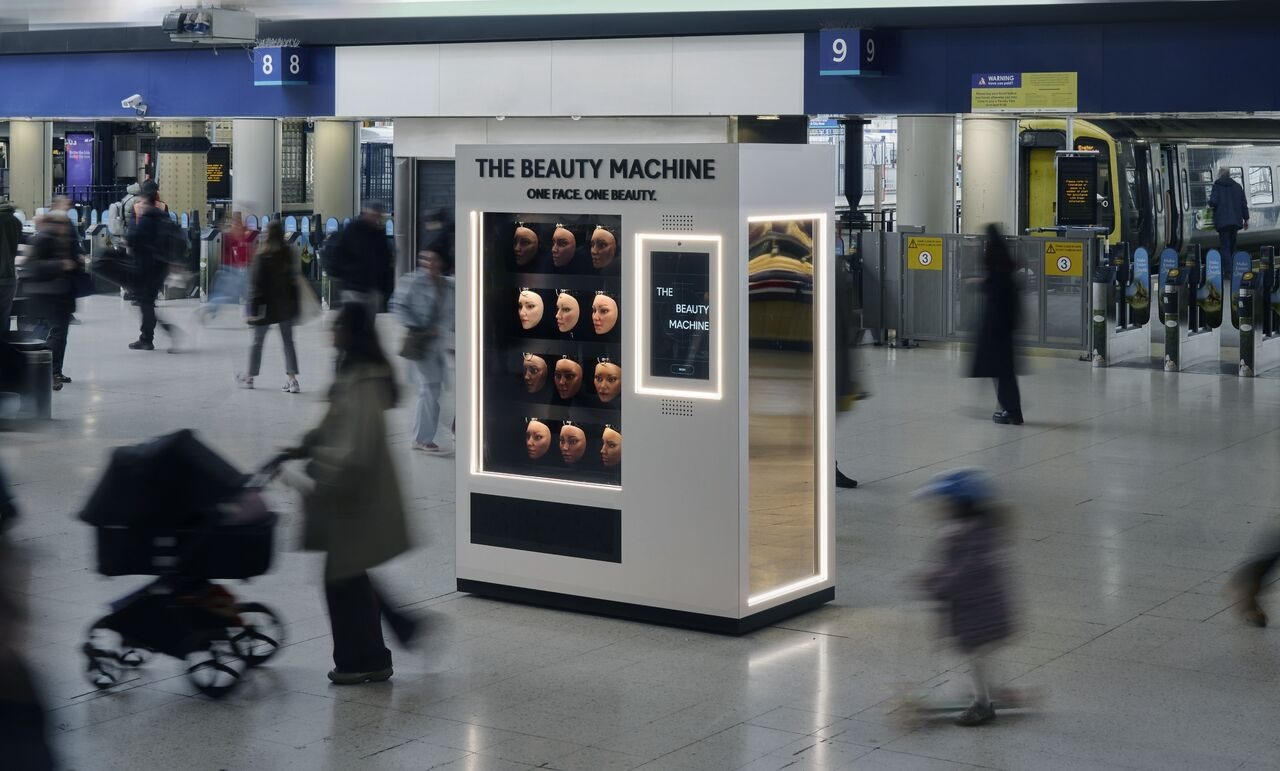 Le 31 mars, les voyageurs de la gare de Waterloo à Londres ont été confrontés à une installation pour le moins dérangeante. À la place des habituels snacks et boissons, un distributeur automatique baptisé « The Beauty Machine » proposait une douzaine de visages. Le problème ? Ils étaient tous rigoureusement identiques.