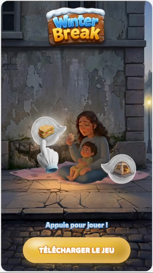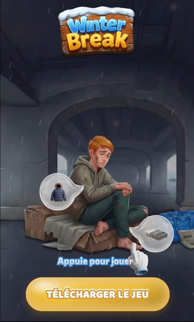 On les voit partout sur nos réseaux sociaux. Ces publicités pour des jeux mobiles qui mettent en scène des personnages grelottant de froid dans des maisons en ruines, attendant qu’on les aide à réparer une fenêtre ou à allumer un feu pour survivre.