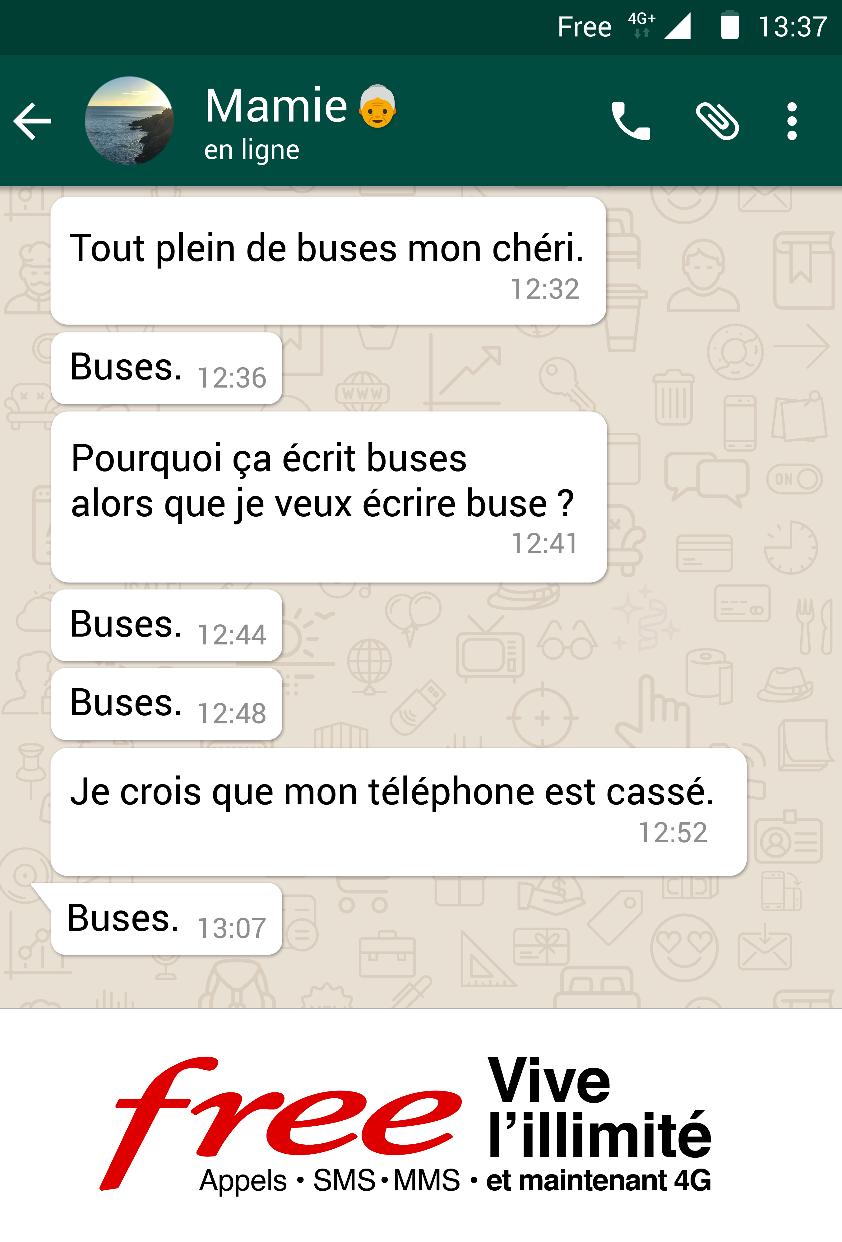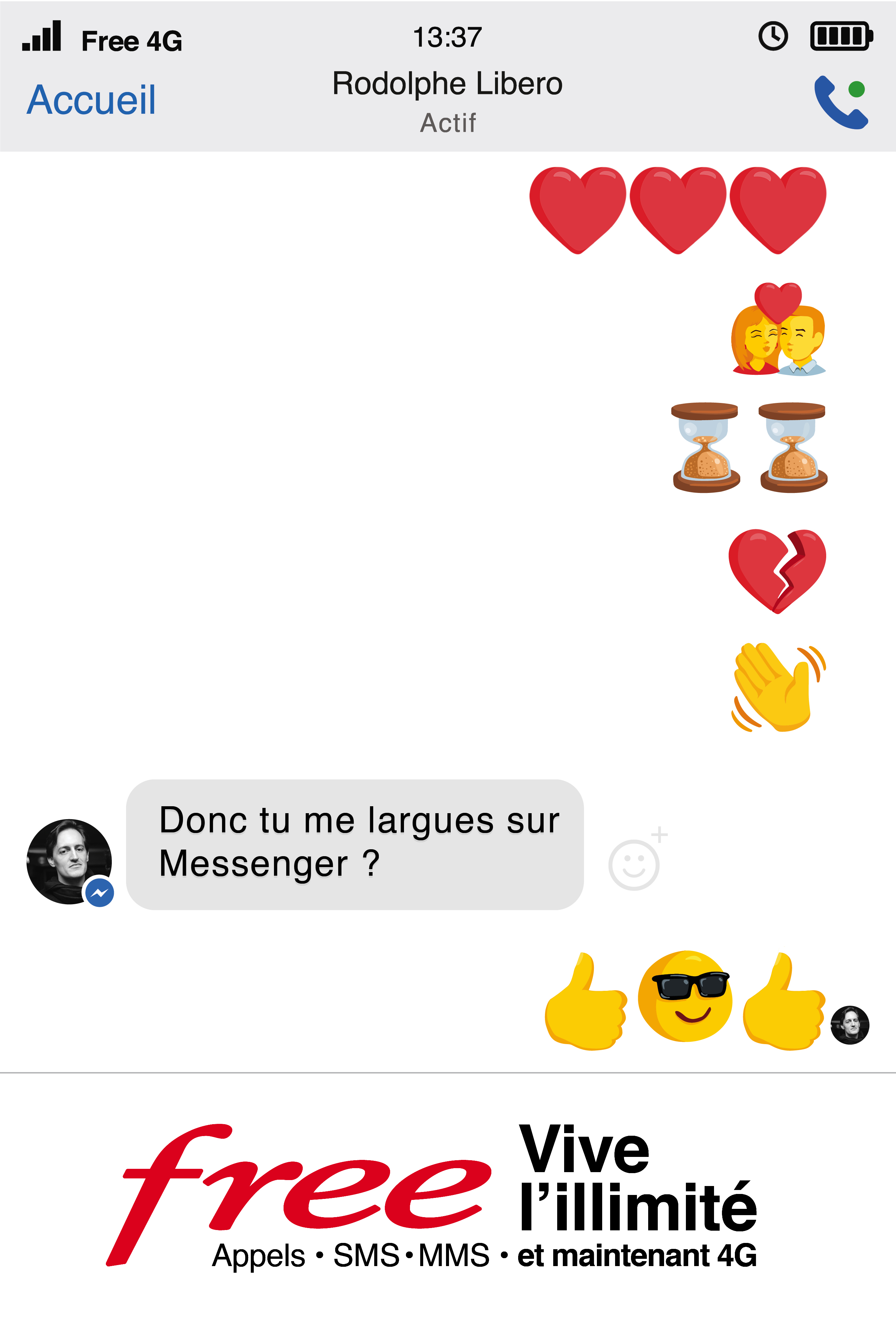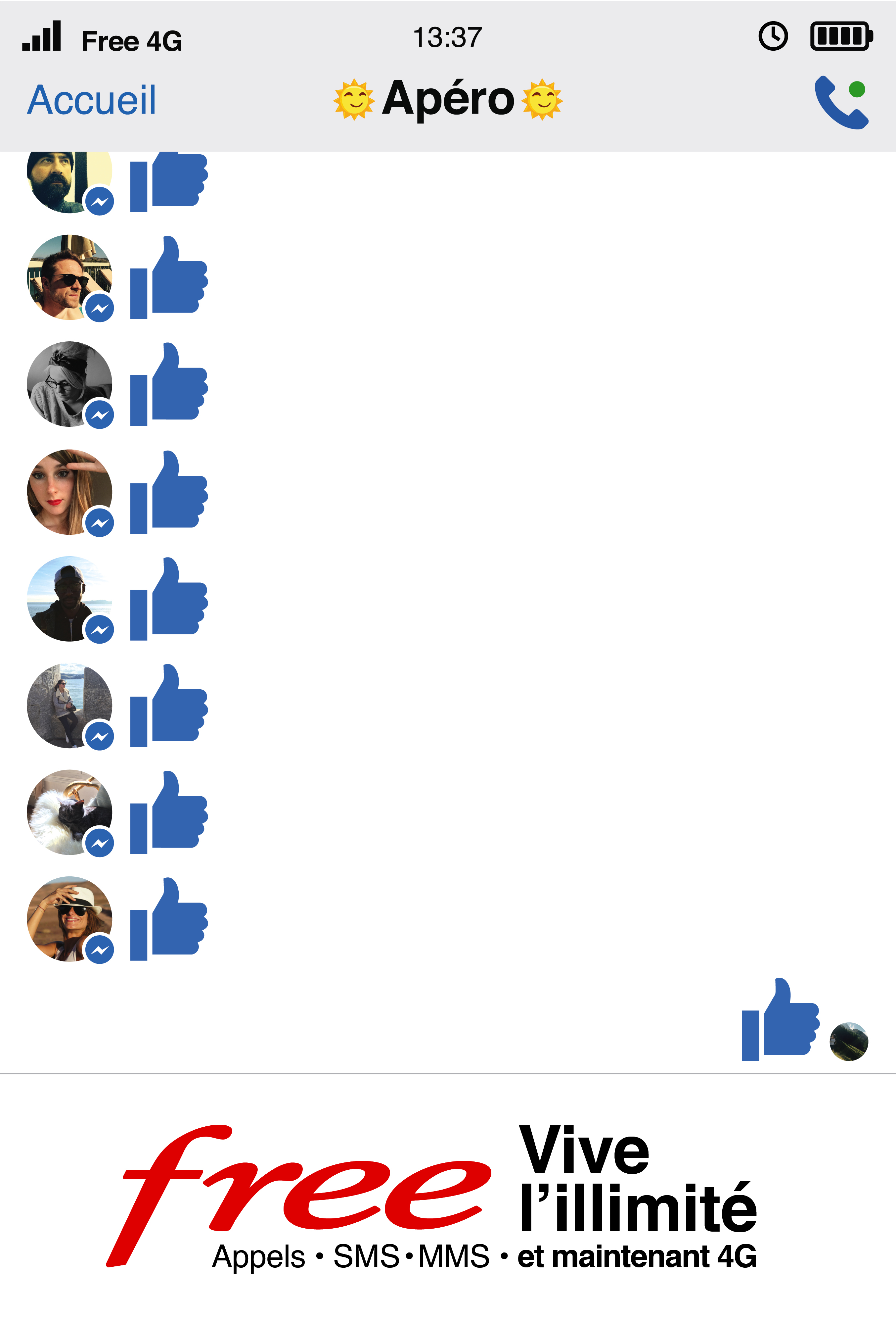 Développée par l’agence DDB, la campagne sonne comme une ode à l’illimité célébrant tout à la fois : les appels manqués par dizaines de nos mamans, les SMS inutiles, et bien entendu la 4G utilisable sans compter (si vous avez aussi un abonnement Freebox). Des insights tirés de l’utilisation des smartphones et des réseaux sociaux par les millennials qui sauront facilement s’identifier à cette campagne.