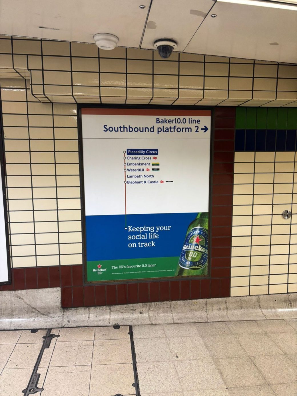 C’est justement ce « zéro » que le géant brassicole Heineken a décidé d’exploiter cette année avec une audace rarement vue dans les transports publics. Oubliez la célèbre Bakerloo Line, bienvenue sur la Bakerl0.0. Une opération massive, visible pendant deux semaines, qui prouve que l’on peut consommer sans modération… à condition de ne pas perdre les usagers en route.