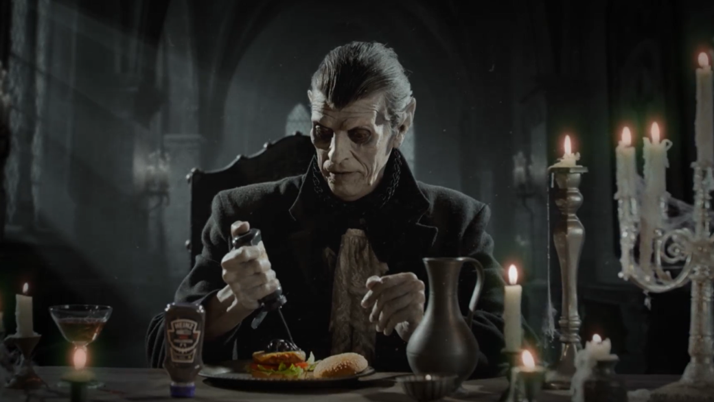 Dans le spot, tout semble rappeler le ketchup et son iconique couleur rouge sang… jusqu’au moment où le film bascule en couleur. Sauf que cette fois, le sang reste noir. C’est là qu’on découvre la vedette du film : la Heinz Mayo Halloween, une édition limitée aussi étrange que séduisante, faite à base d’ail noir.