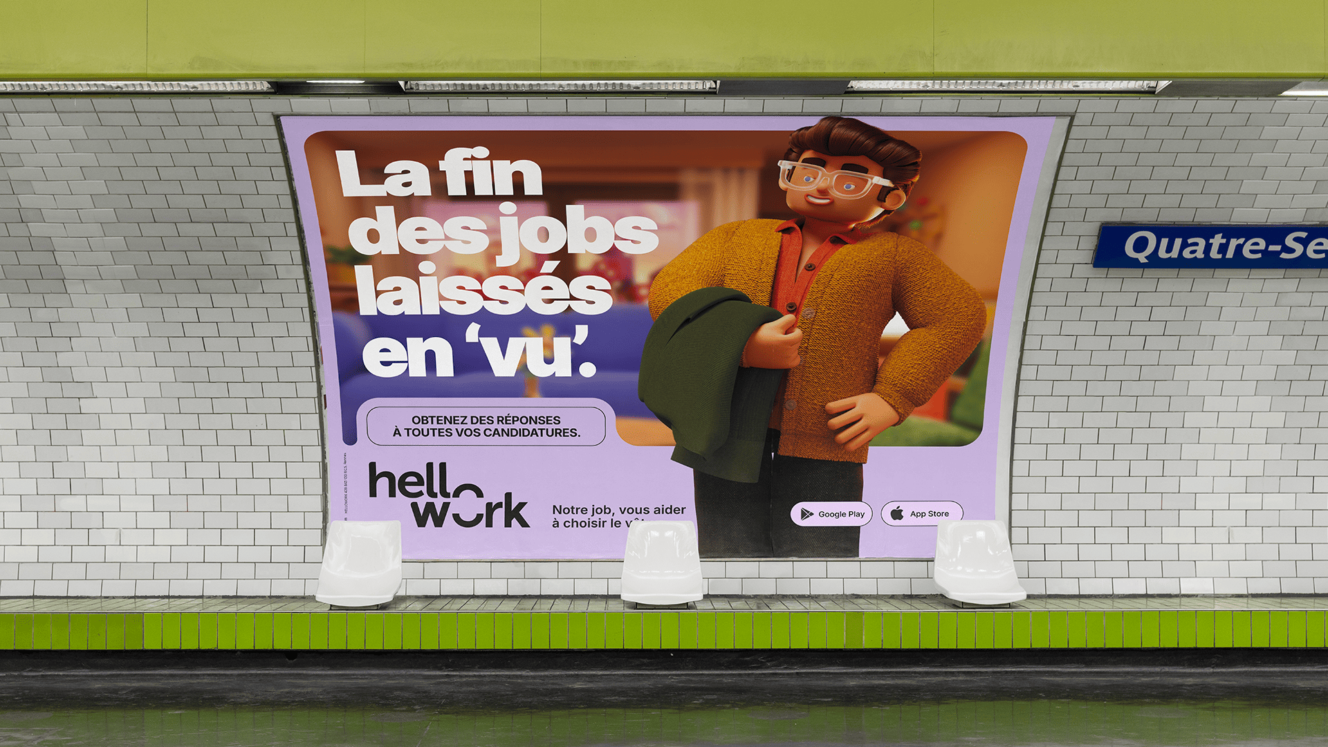 Mais HelloWork ne reste pas uniquement derrière les écrans. La campagne se déploie également au cœur des villes avec un puissant dispositif d’affichage national en OOH et DOOH. Les accroches, complices et décalées, interpellent directement les passants en détournant les codes du quotidien. Cette seconde vague de visuels, prévue dans quelques mois, viendra renforcer ce message de proximité et de bienveillance qui fait désormais la force de la marque sur le marché du recrutement.