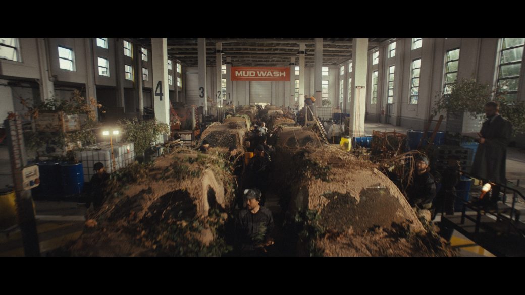 Le twist de la campagne est particulièrement malin. Dans ce monde de « faux durs » encrassés artificiellement, le seul véhicule qui apparaît impeccablement propre, c’est le nouveau Jeep Compass. Lorsqu’il traverse la ville, le contraste est saisissant. Les autres conducteurs se figent, leurs mises en scène s’effondrent.