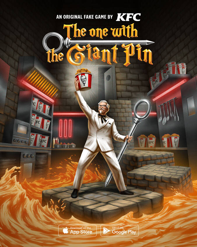 Ainsi, les fameux défis absurdes des publicités trompeuses deviennent de vrais mini-jeux : des tonneaux roulants à éviter, des énigmes avec des épingles géantes, et même ces fameuses scènes où un roi est bloqué dans un piège. Avec “Original Fake Games”, KFC ne vend pas du rêve… mais une vraie dose de fun.