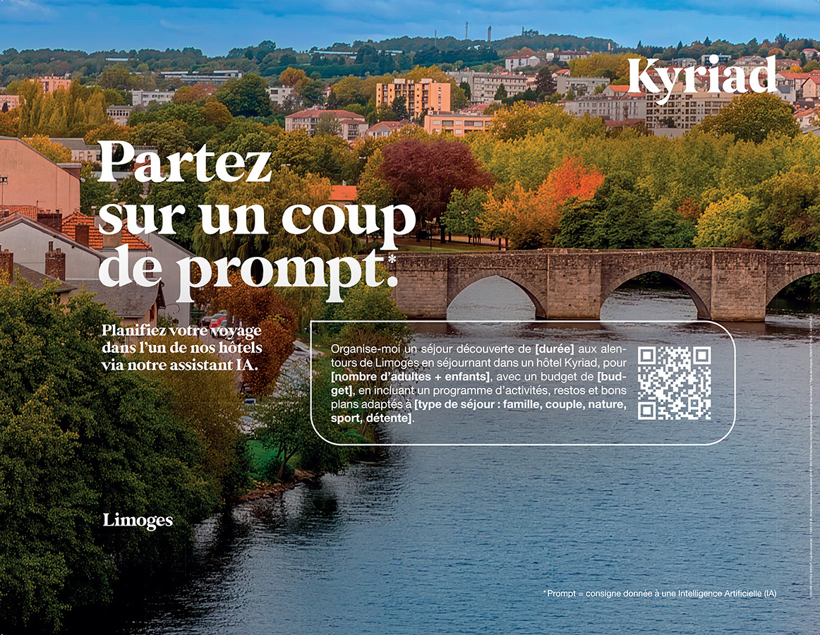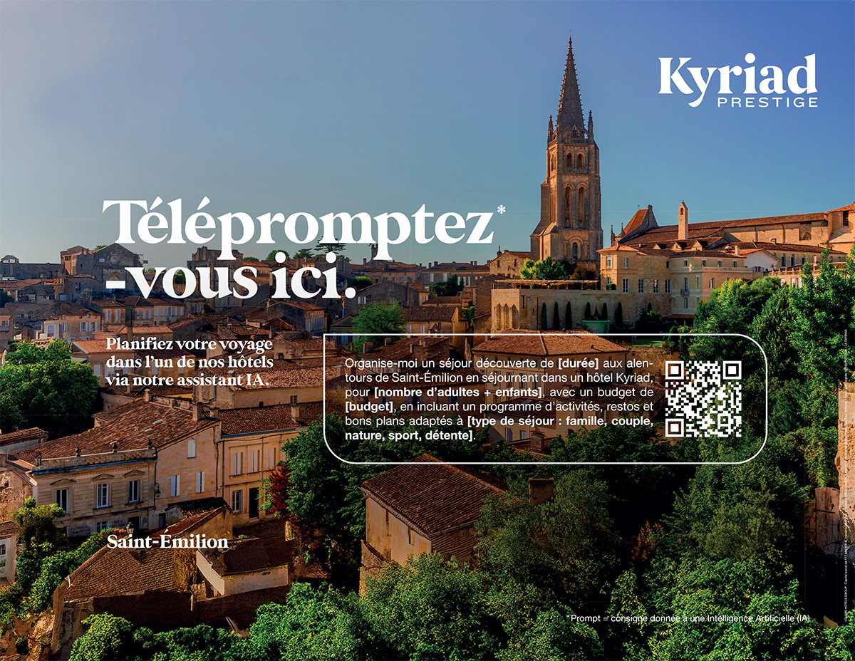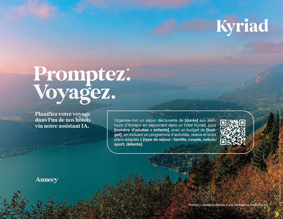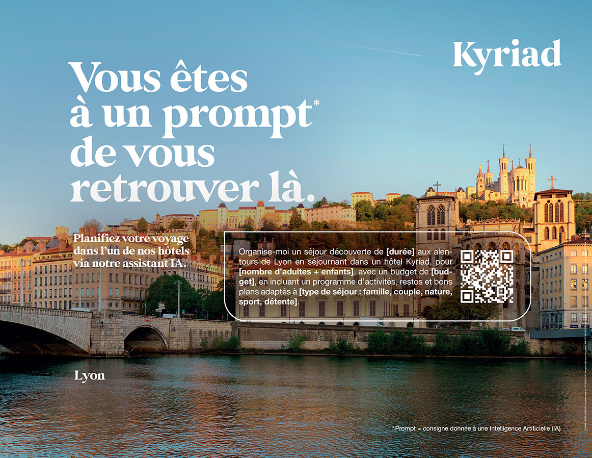 Face à cette réalité, et dans un contexte où les usages technologiques évoluent à une vitesse fulgurante, Kyriad (enseigne du Louvre Hotels Group) a décidé de frapper un grand coup. Accompagnée par l’agence créative Change, la marque hôtelière dévoile « Promptez, partez. », une campagne inédite qui fait de l’Intelligence Artificielle le nouveau point de départ incontournable de vos prochains séjours.