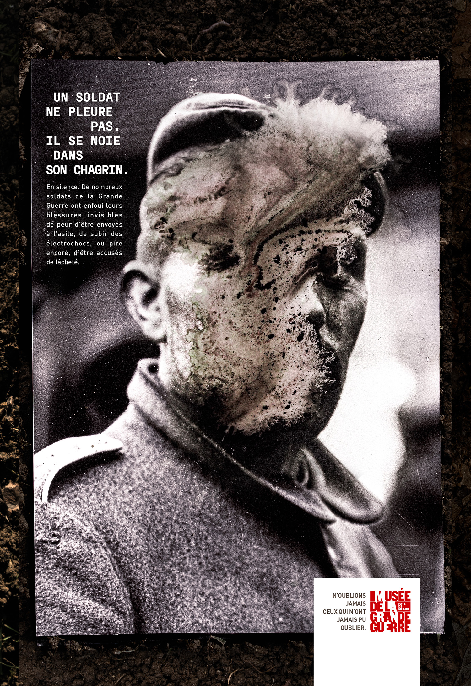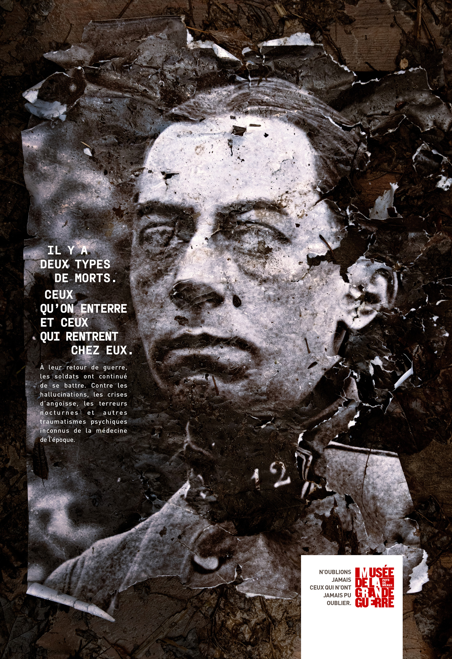 Longtemps ignorés, accusés à tort de lâcheté ou internés de force, ces hommes souffraient de ce que la médecine moderne nomme aujourd’hui le syndrome de stress post-traumatique. Pour rendre hommage à ces héros meurtris de l’intérieur, à l’occasion de l’ouverture d’une tranchée immersive grandeur nature sur le site de Meaux, l’agence BBDO Paris dévoile « Les âmes cassées ».