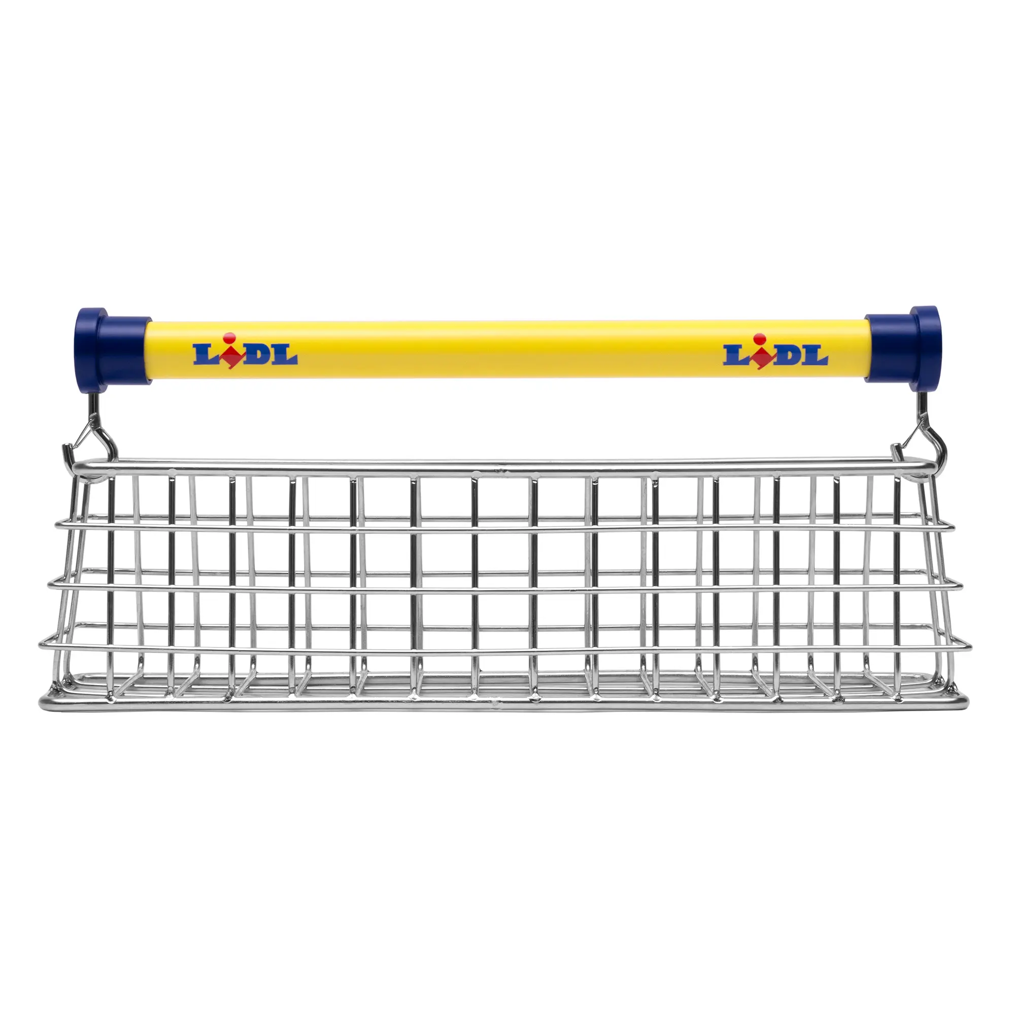 L’objet est fascinant de premier degré. Il s’agit littéralement d’un sac à main en forme de panier de course métallique. Conçu en acier inoxydable industriel, il reprend l’esthétique grillagée du caddie que l’on pousse tous les samedis matin. Le souci du détail est poussé à l’extrême : on y retrouve la poignée emblématique de l’enseigne et, cerise sur le gâteau, un porte-clés en forme de jeton de caddie.