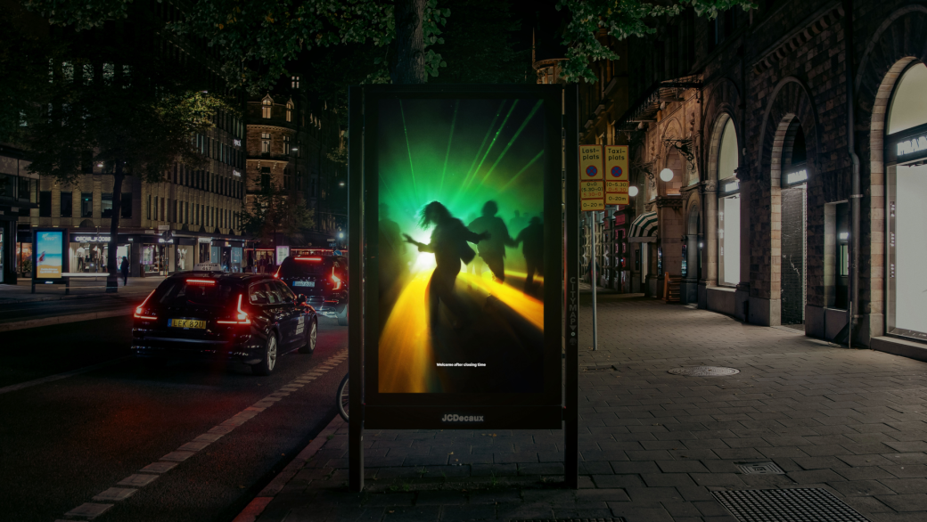 L’idée ? Capturer l’énergie des dancefloors à travers des visuels lumineux, lasers et néons qui évoquent subtilement le fameux “M” iconique. Une campagne simple, maligne et parfaitement intégrée à la vie urbaine suédoise.