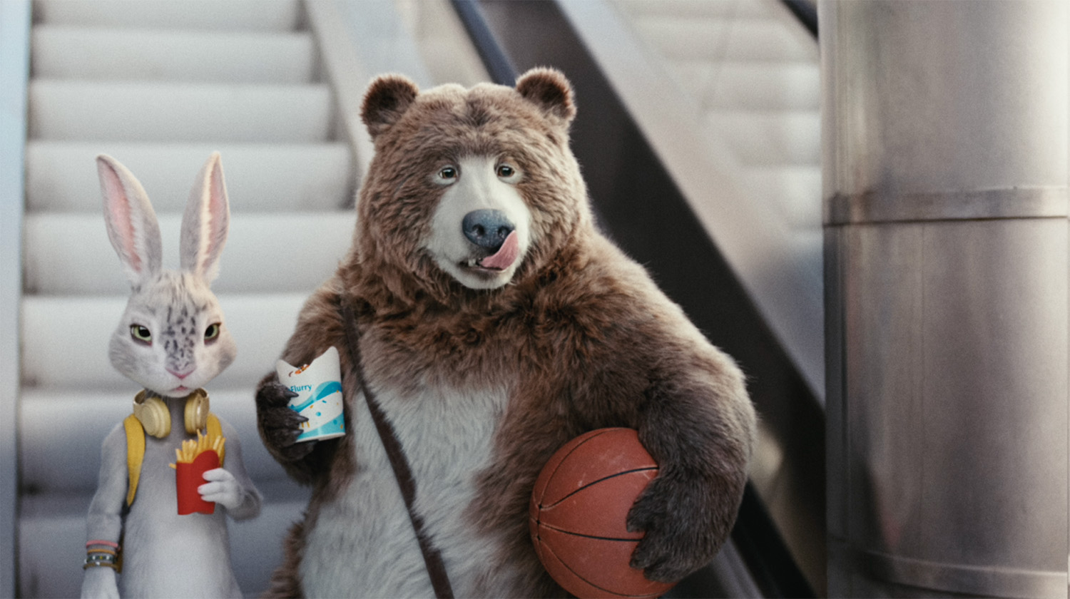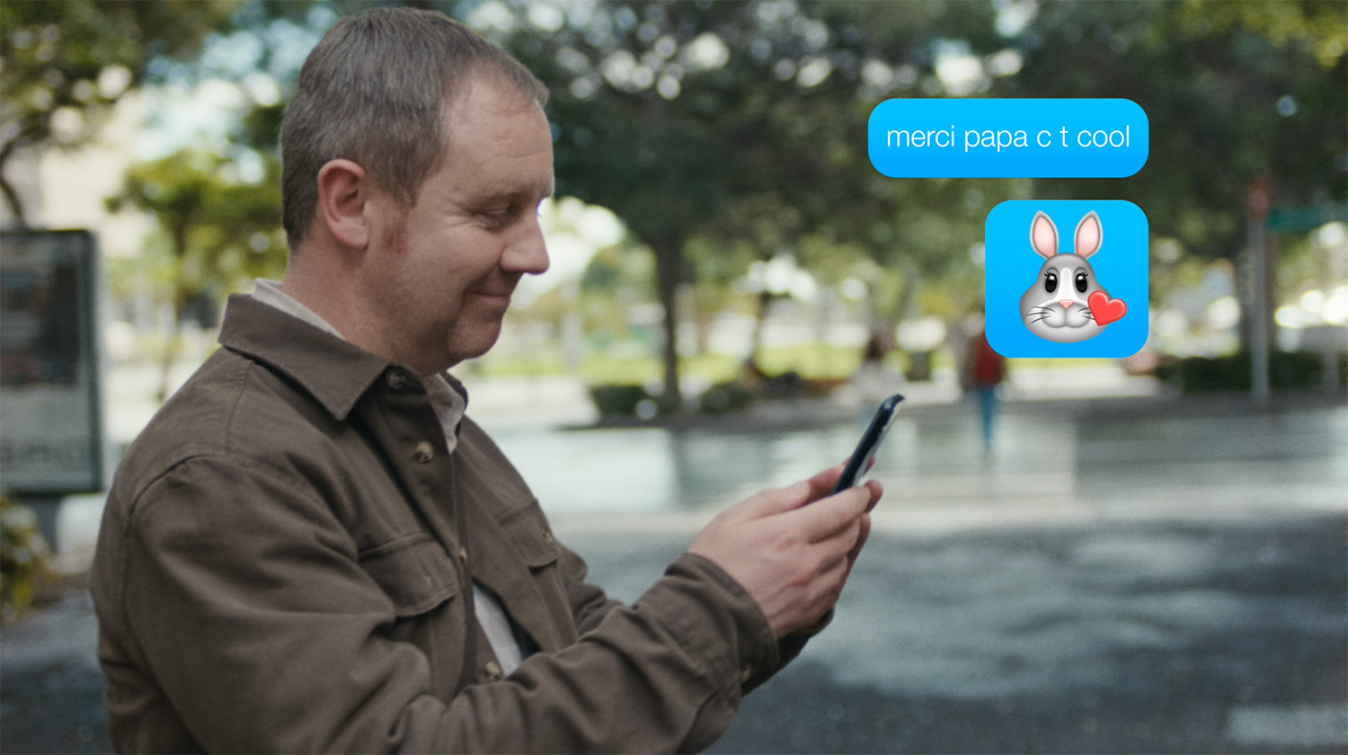 La nouvelle campagne, sobrement intitulée « Bear with me », utilise un ressort créatif particulièrement juste. Réalisé en live action par Quad et Illogic Studios, le film nous plonge dans le sillage d’un ours tentant de redonner le sourire à un lapin. Leur déambulation urbaine s’achève naturellement dans un restaurant de l’enseigne. Le dénouement révèle alors que ces personnages sont en réalité les avatars d’un père et de sa fille, tels qu’ils s’apparaissent dans leurs fils de discussion mobiles.