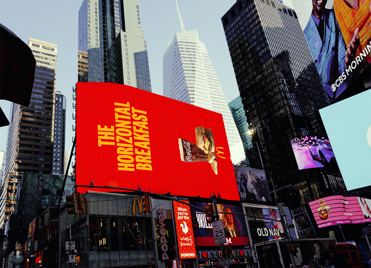 Pour illustrer ce concept, l’agence n’a pas cherché à faire compliqué. Elle a simplement fait pivoter la communication. Littéralement. La campagne Horizontal Breakfast déploie des visuels entièrement basculés à 90 degrés. Que ce soit sur les panneaux d’affichage géants, dans les spots TV ou sur les contenus diffusés sur les réseaux sociaux, tout est présenté à l’horizontale.