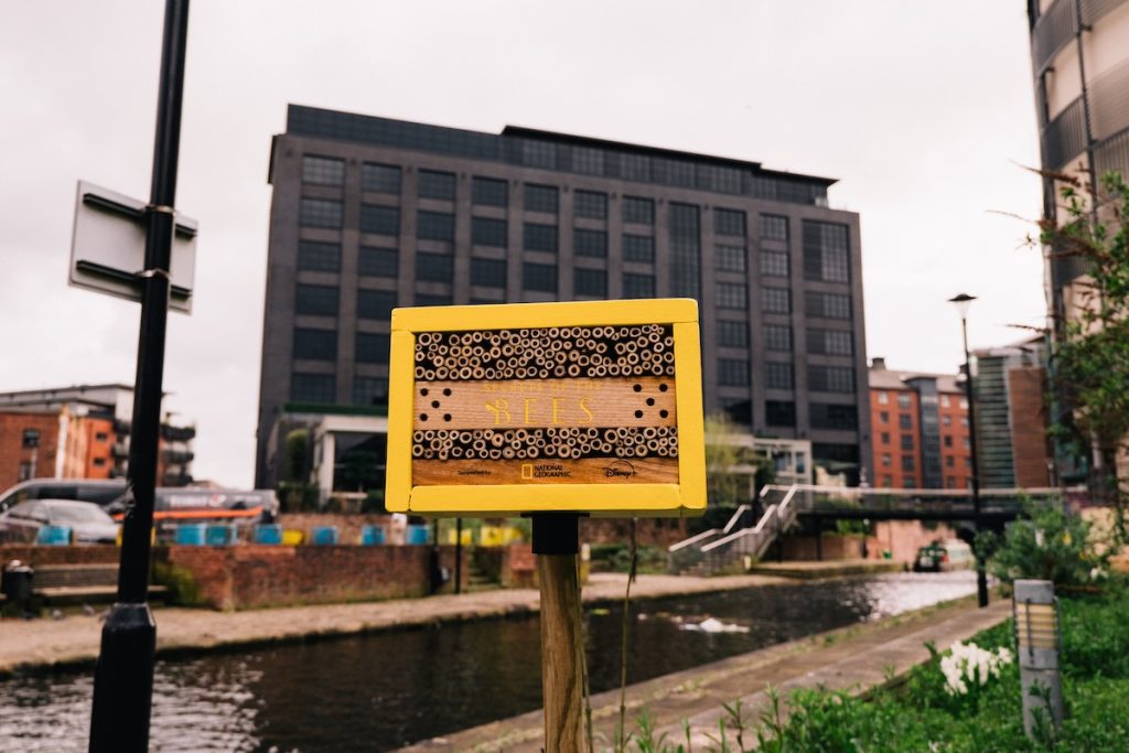 En partenariat avec l’agence créative Meanwhile et le spécialiste du street marketing Build Hollywood, National Geographic a déployé une série de « hôtels pour abeilles » à travers plusieurs parcs emblématiques de Manchester, comme le Chorlton Water Park ou le jardin botanique Fletcher Moss. Contrairement aux panneaux d’affichage classiques qui se limitent à l’aspect visuel, ces structures intègrent des cavités et des matériaux naturels spécifiquement conçus pour offrir un abri aux pollinisateurs.