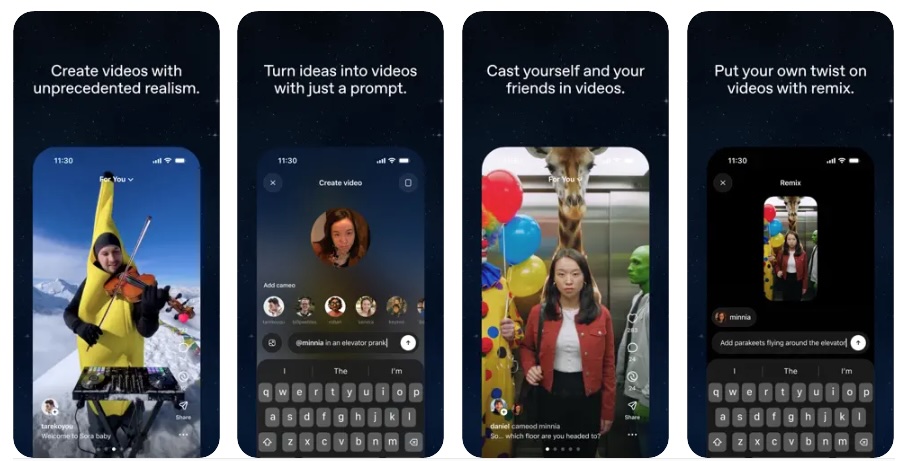 Le lancement de l’application Sora ouvre un nouveau chapitre. Disponible sous invitation en Amérique du Nord, elle reprend les codes familiers des plateformes vidéo (feed vertical, page “Pour toi”), mais avec une différence radicale : tous les contenus sont générés ou transformés par IA.