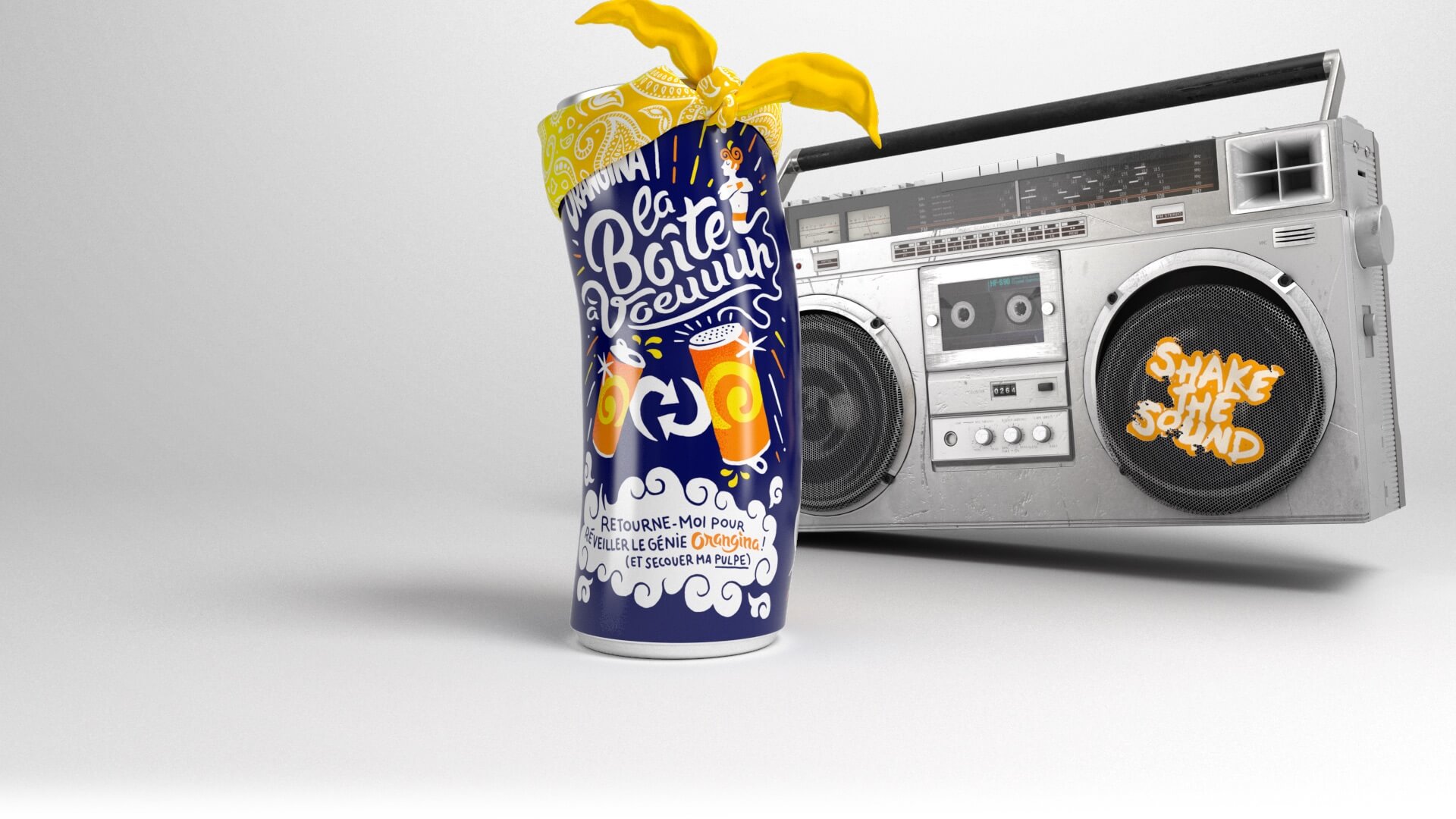 Orangina, la boisson la plus secouée du marché des softs drinks, dévoile avec Buzzman sa dernière innovation : la Boîte À Voeuuuh ! Dès le 14 mai, 20 millions de canettes envahissent les points de vente avec la particularité de pouvoir exaucer votre voeu le plus secoué.