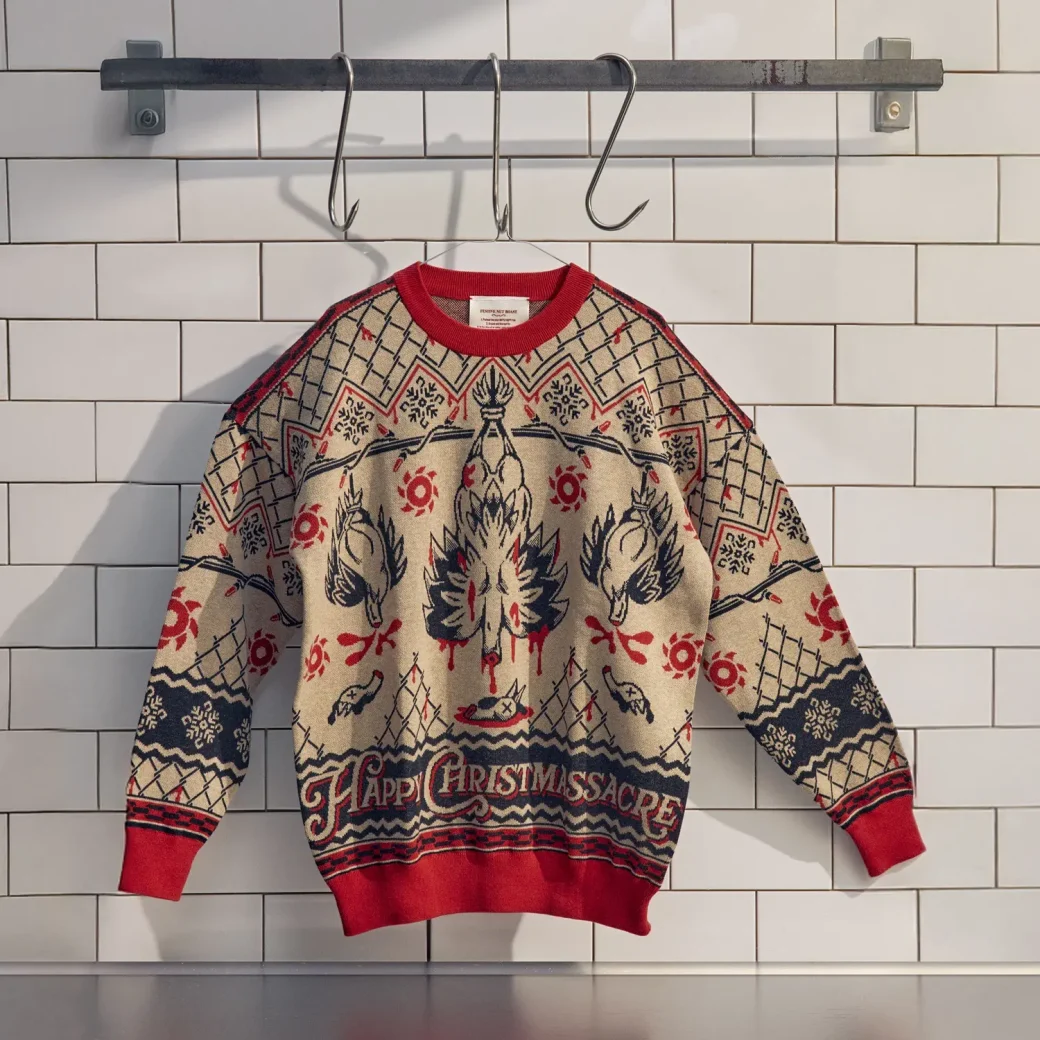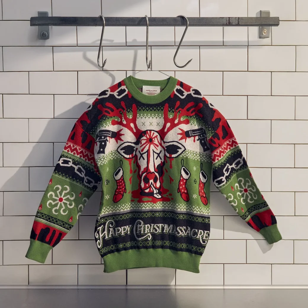 C’est drôle, c’est réconfortant et c’est inoffensif. Enfin, ça, c’était avant que PETA UK ne décide de s’en mêler. L’association, connue pour ses coups d’éclat médiatiques, a décidé de transformer ce vêtement doudou en un véritable manifeste politique insoutenable. Fini les rennes au nez rouge et les bonhommes de neige souriants : cette année, la mode est à l’abattoir.