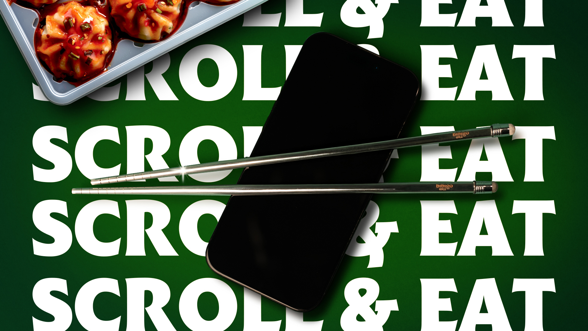 La réponse de Rethink à ce problème moderne prend la forme des ScrollSticks. Le concept est redoutable d’efficacité. Il s’agit de baguettes à double embout, spécialement pensées pour la génération toujours en ligne. D’un côté, on retrouve la forme classique en métal, typique des baguettes traditionnelles coréennes, idéale pour attraper les fameux dumplings de la marque.