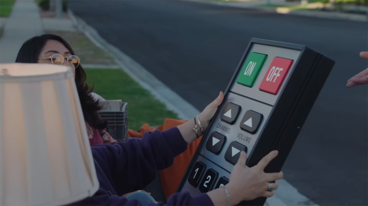 Une seule option possible : appuyer sur « ON ». C’est là que le concept de « Deliver the Rainbow » prend tout son sens : la publicité ne s’interrompt pas, elle débarque physiquement chez vous. C’est une critique amusante de notre consommation de contenu : ici, le spectateur a littéralement le contrôle, mais il est aussi piégé par le spectacle.