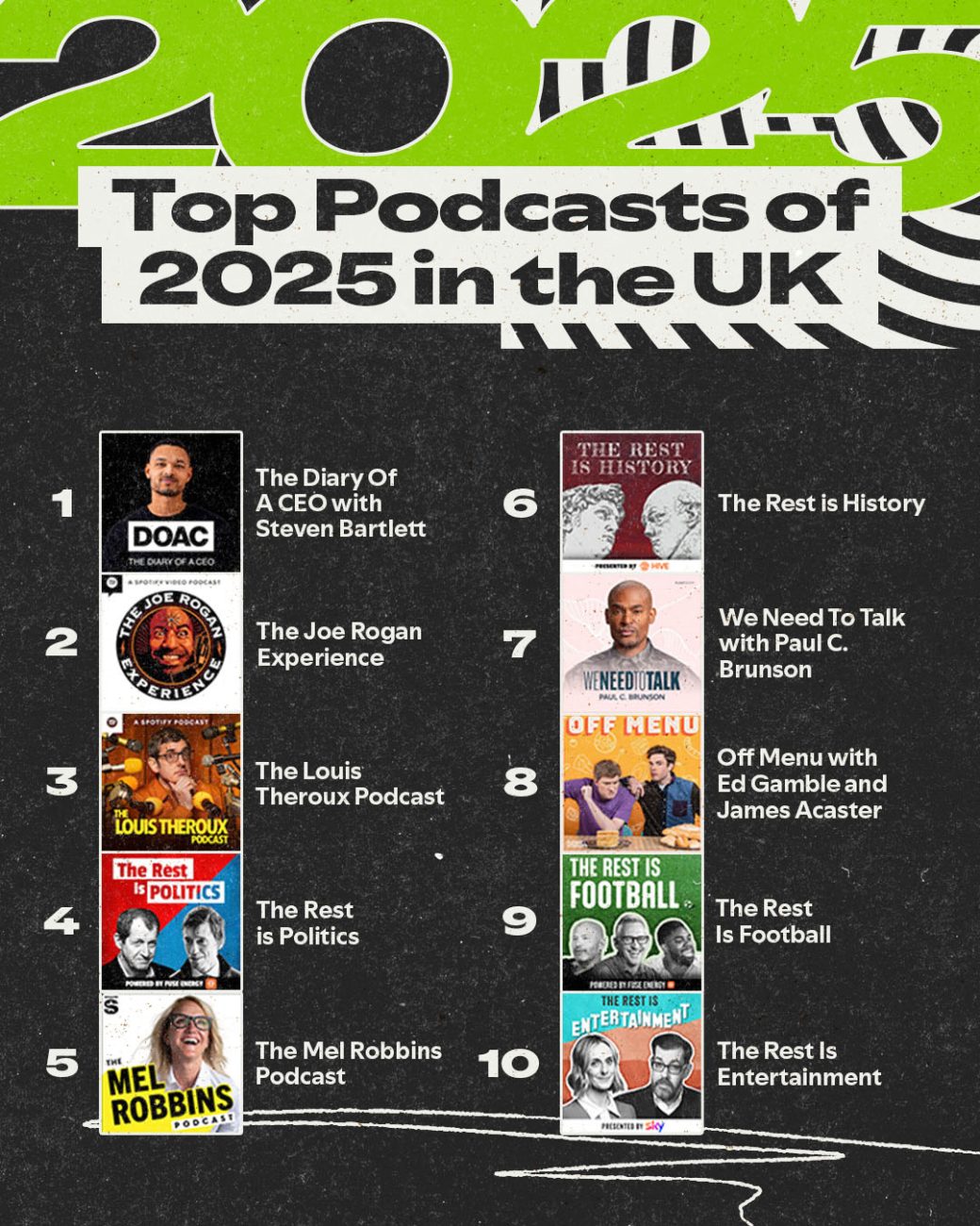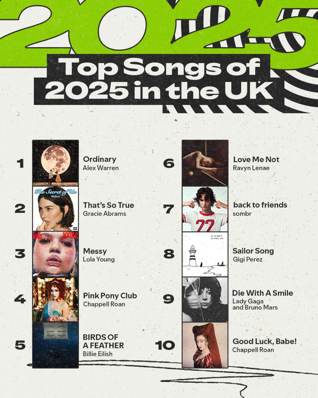 Si l’expérience est digitale, Spotify a mis les grands moyens pour occuper le terrain physique, notamment au Royaume-Uni où la campagne prend des proportions gigantesques. La marque s’offre un spot publicitaire cinématographique réalisé par KC Locke, connu pour ses clips léchés. La vidéo est un véritable Who’s Who de la culture pop 2025, avec des apparitions de Central Cee, PinkPantheress, ou encore Louis Theroux.