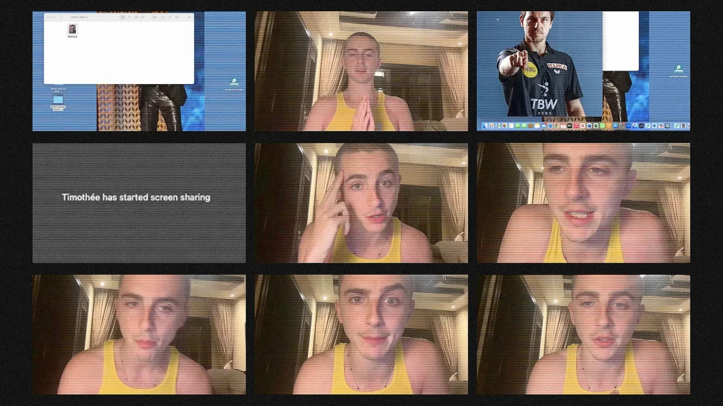 On y découvre l’acteur star, très sérieux, en pleine visioconférence avec une équipe marketing visiblement au bout du rouleau. L’objet de la discussion ? La promotion de Marty Supreme, le nouveau film de Josh Safdie centré sur l’univers du tennis de table, dont la sortie est prévue pour Noël.