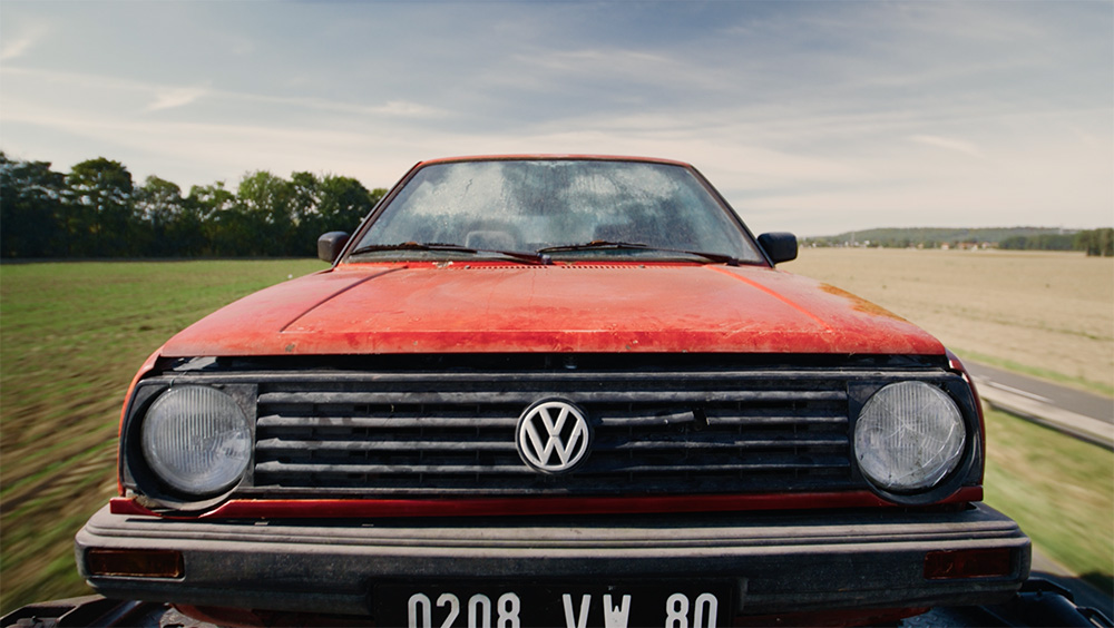 Pour faire passer le message, DDB Paris signe une campagne filmée au ton surprenant. On y découvre une Golf 2 vieillissante, abandonnée au bord d’une route, rapidement prise en charge par une remorqueuse Derichebourg. Commence alors une séquence de transformation : le véhicule est démonté, broyé et recyclé à 95 %, le tout sur fond de banjo, trompette et chœurs entraînants.