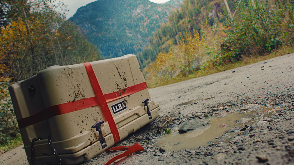 Le film s’ouvre sur une scène inattendue. Un YETI Tundra Cooler s’échappe de l’arrière d’un pick-up et rebondit dans la boue, façon cascade hollywoodienne. Ce simple accident déclenche une vision complètement folle dans l’esprit du personnage principal : une succession de pires scénarios dignes d’un rêve fiévreux.